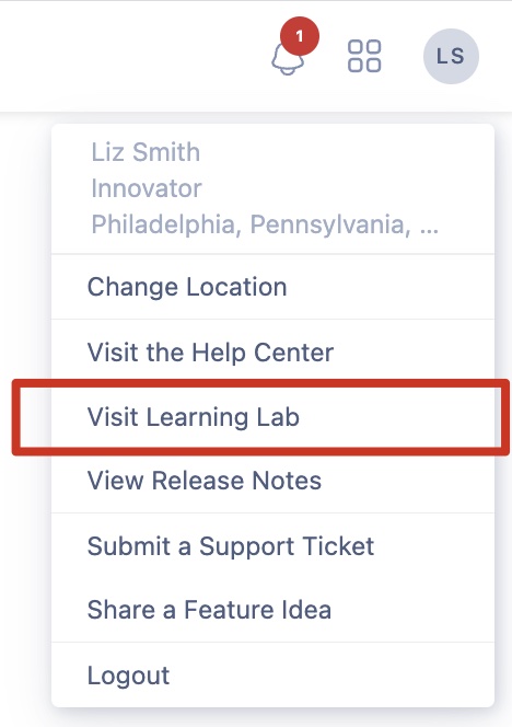 To access the Albert Learning Lab, sign into your Albert account. Once you're logged in, click on your initials in the top right corner and select "Visit Learning Lab."