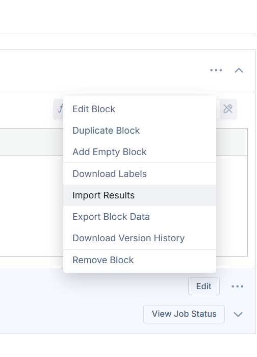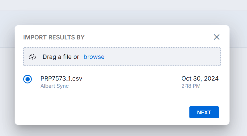 To import the data into the task, select “Import Results” from the three dots to the right of the data template. Select the file added by Albert Sync. You will be prompted to map the CSV fields to the data template fields. Make any changes and select submit.