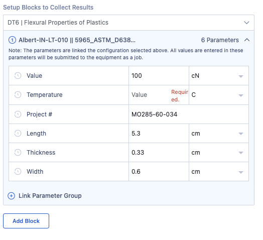 Note: Equipment Linked Groups are configured within Bluehill software based on available test methods and will show up automatically in your Albert environment.