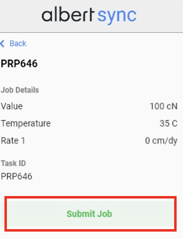 Once in the queue, jobs can be submitted to machines. To send your job to Bluehill software on the desired machine, click on the desired Task ID within Albert Sync.