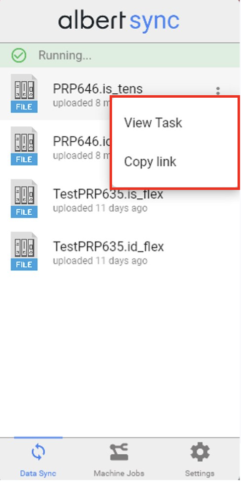 Within Albert Sync, you can click on three dots next to your file name and select "View Task" to easily navigate to the Task associated with the file in Albert. You can click on the same three dots next to your file name and select "Copy Link" to share the Albert Task link with colleagues.