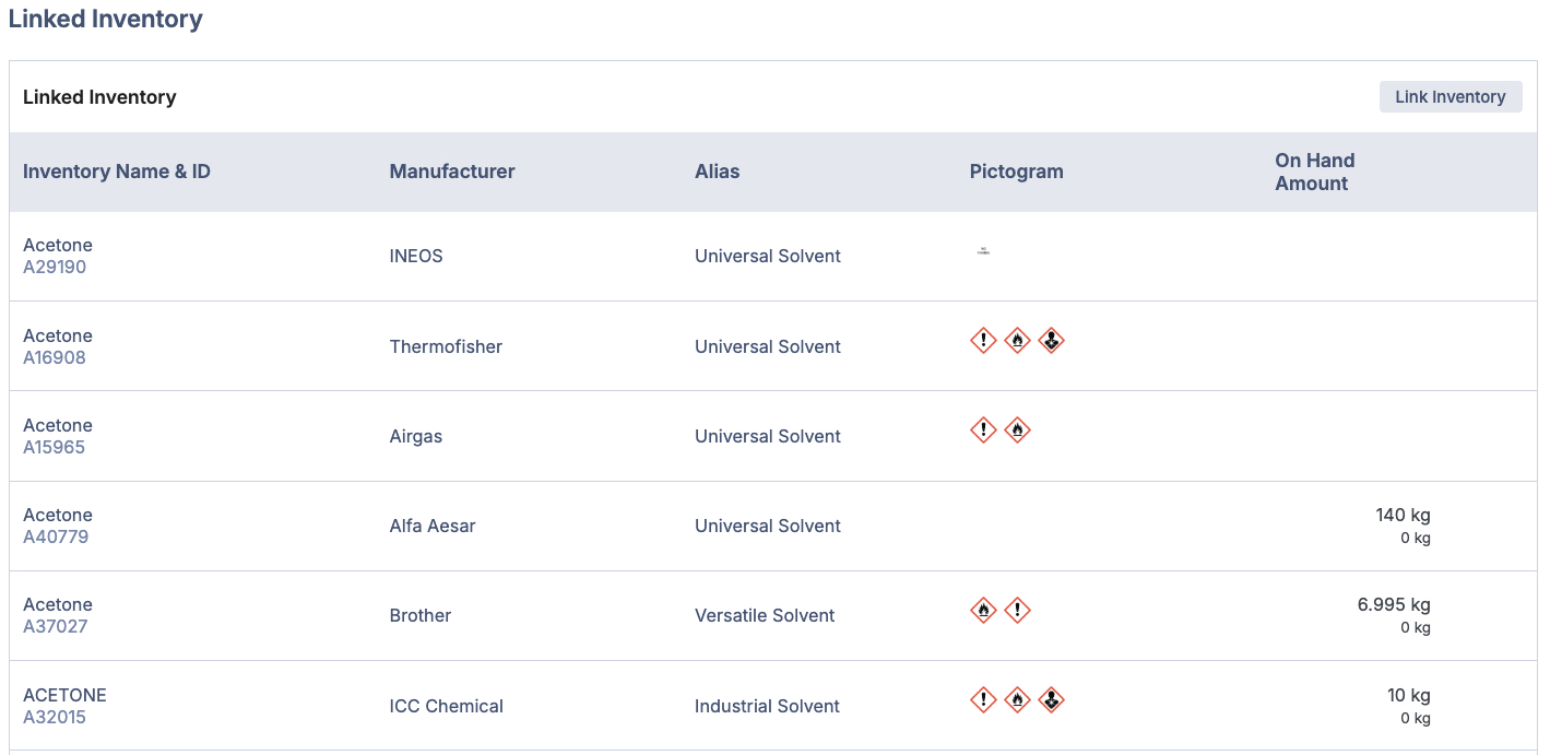 Tip: Inventory can be linked across all types - so you can link a raw material to a formula, consumable, or even equipment!i