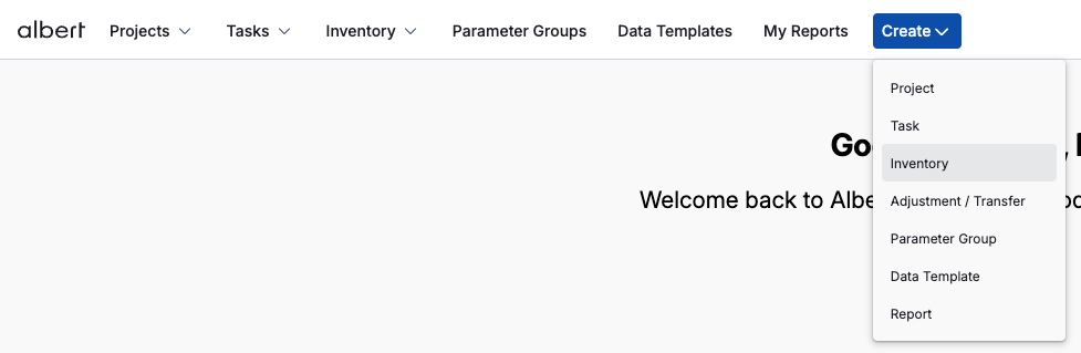 Selecting Create after you've filled out all relevant information about your Inventory item will create the new item within Albert.