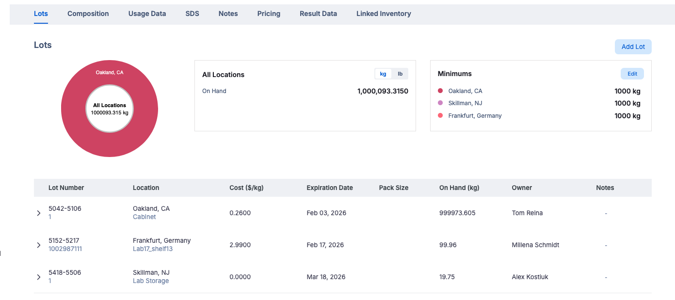 In the Lots Section, you will see a summary of the different lots of the inventory item.