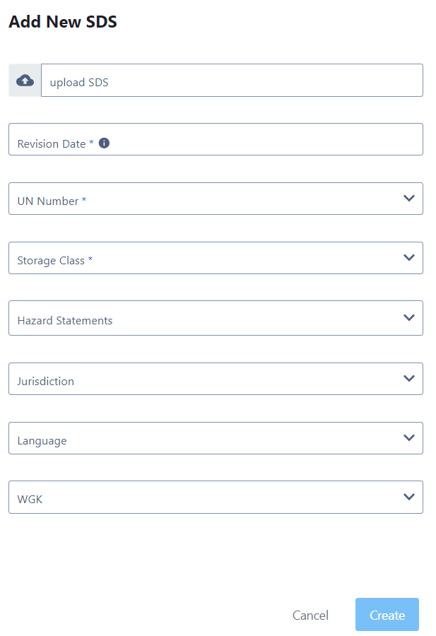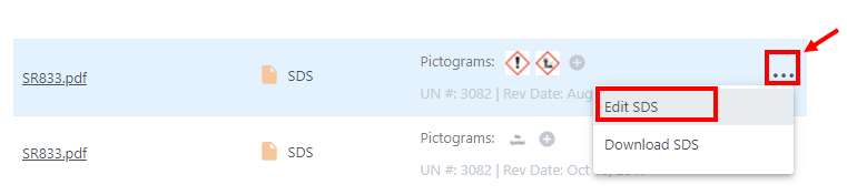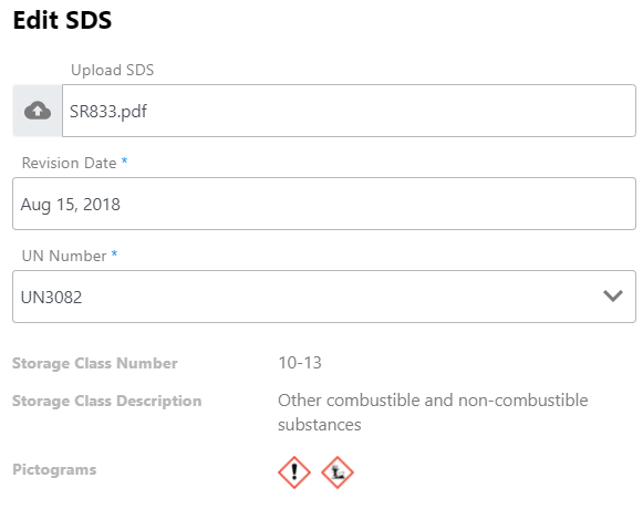 Now you can edit the SDS file information such as uploading another SDS file, or changing the revision date and UN number.