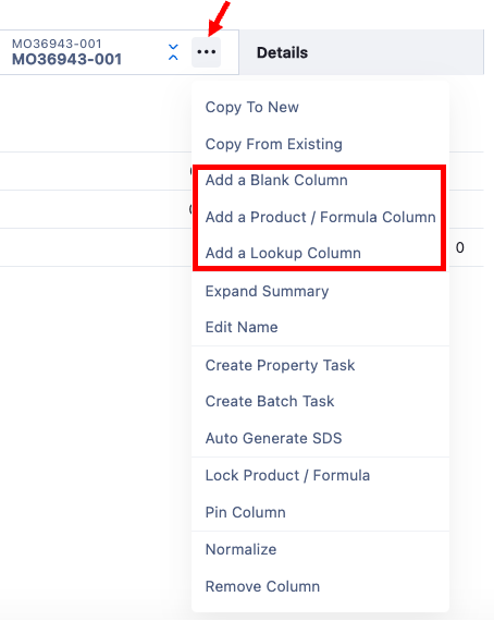Product / Formula columns are used to add a column into the Worksheet for a new Product / Formula want included in the Project.