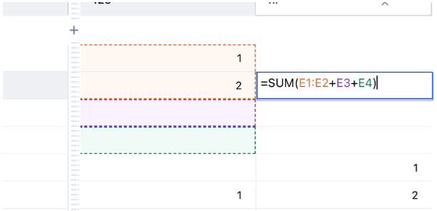 When you create or edit formulas functions (for calculations) in the Worksheet, you will see color-coded outlined around your referenced cells, making it simple to identify and verify the cells included in your calculations.