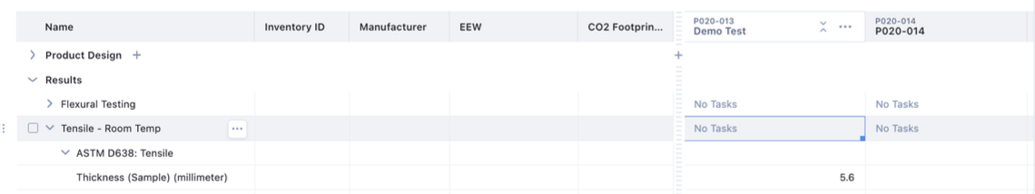 If the Data Template required is not populated in the Results Grid, create a Property Task to set the desired structure with the proper Parameter Groups and Data Template. This auto-generates Results Rows in the Worksheet for inline data entry.