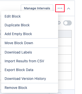 Block actions can also be performed inline to the block by clicking on the three dots in the block, allowing for differentiation of the respective workflows.