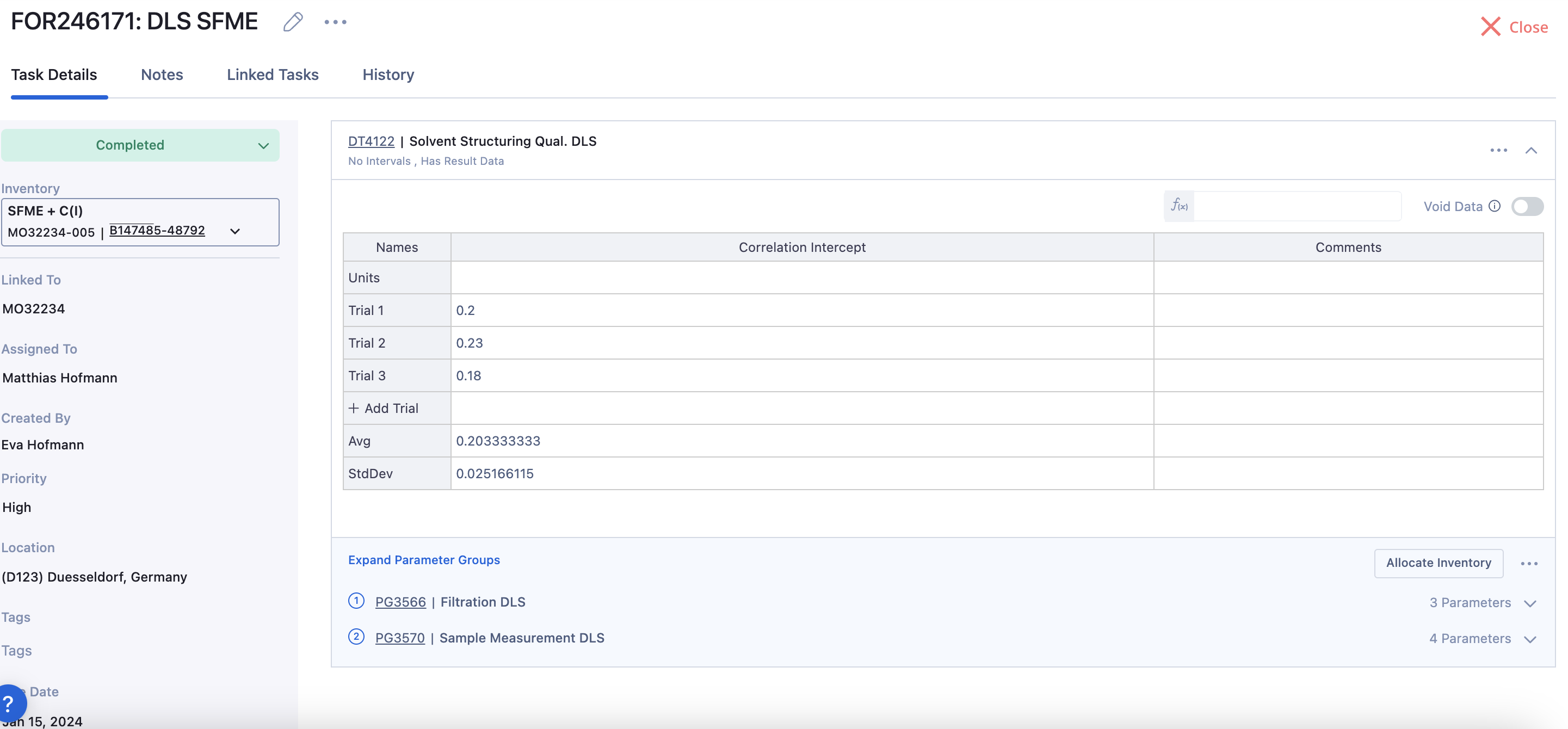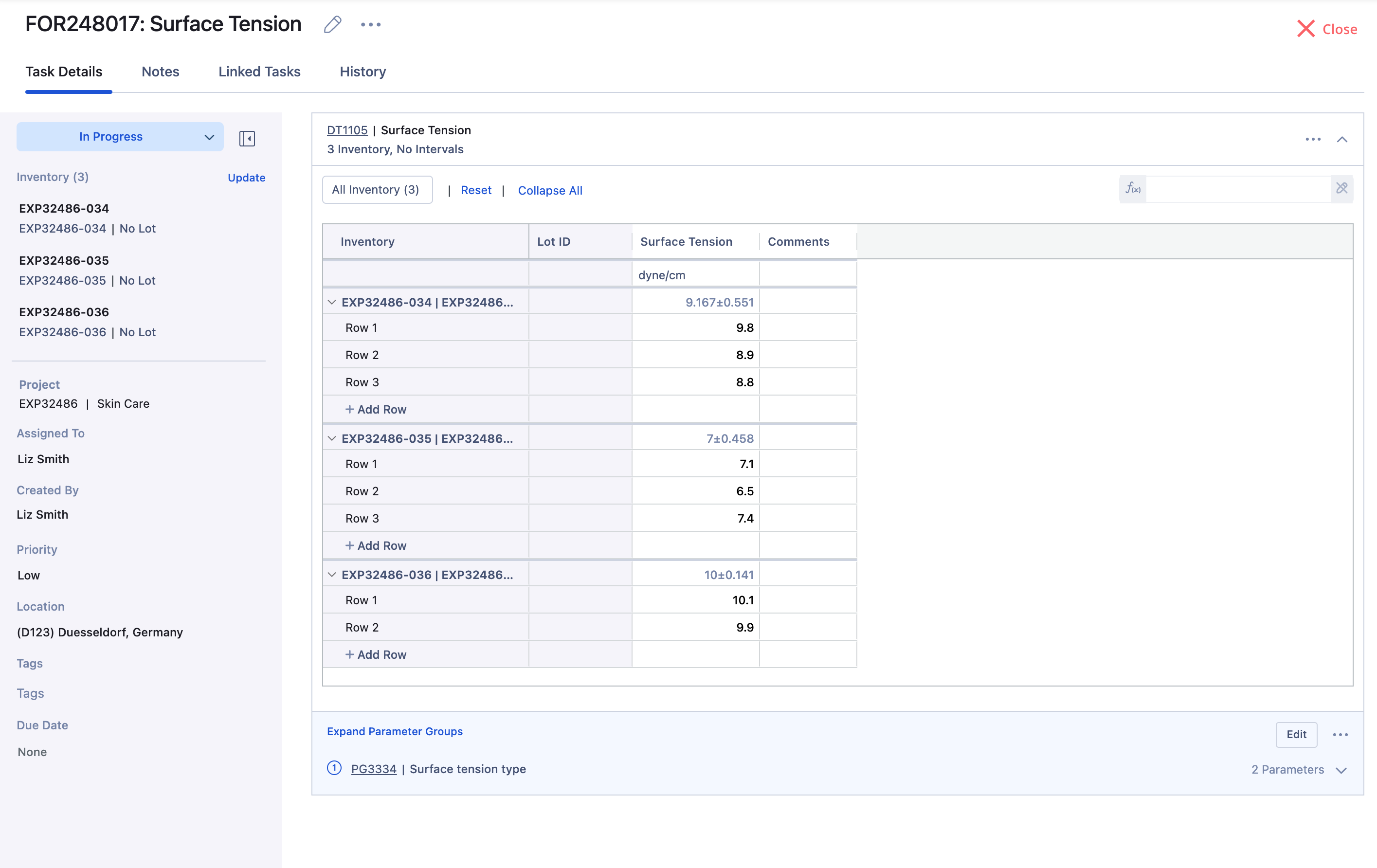 A Property Task in Albert is how you create a task to test and document the properties of a formulation created in batch tasks or of raw materials. A Property Task is comprised of Parameter Groups and Data Templates.
