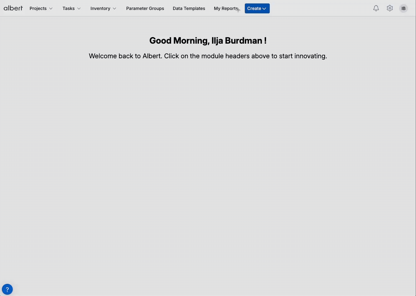 1 Select inventory – choose the formulation or other inventory item (Albert ID) you’re batching. For classic batch-only workflows, see Batch Tasks.