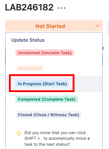 Change the status of the Batch Task to "In Progress (Start Task)".