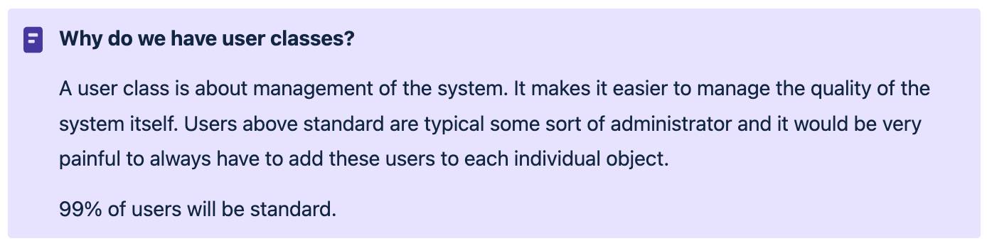 The Object + User Class allows you to answer the question, "Can I perform this operation on this object?"