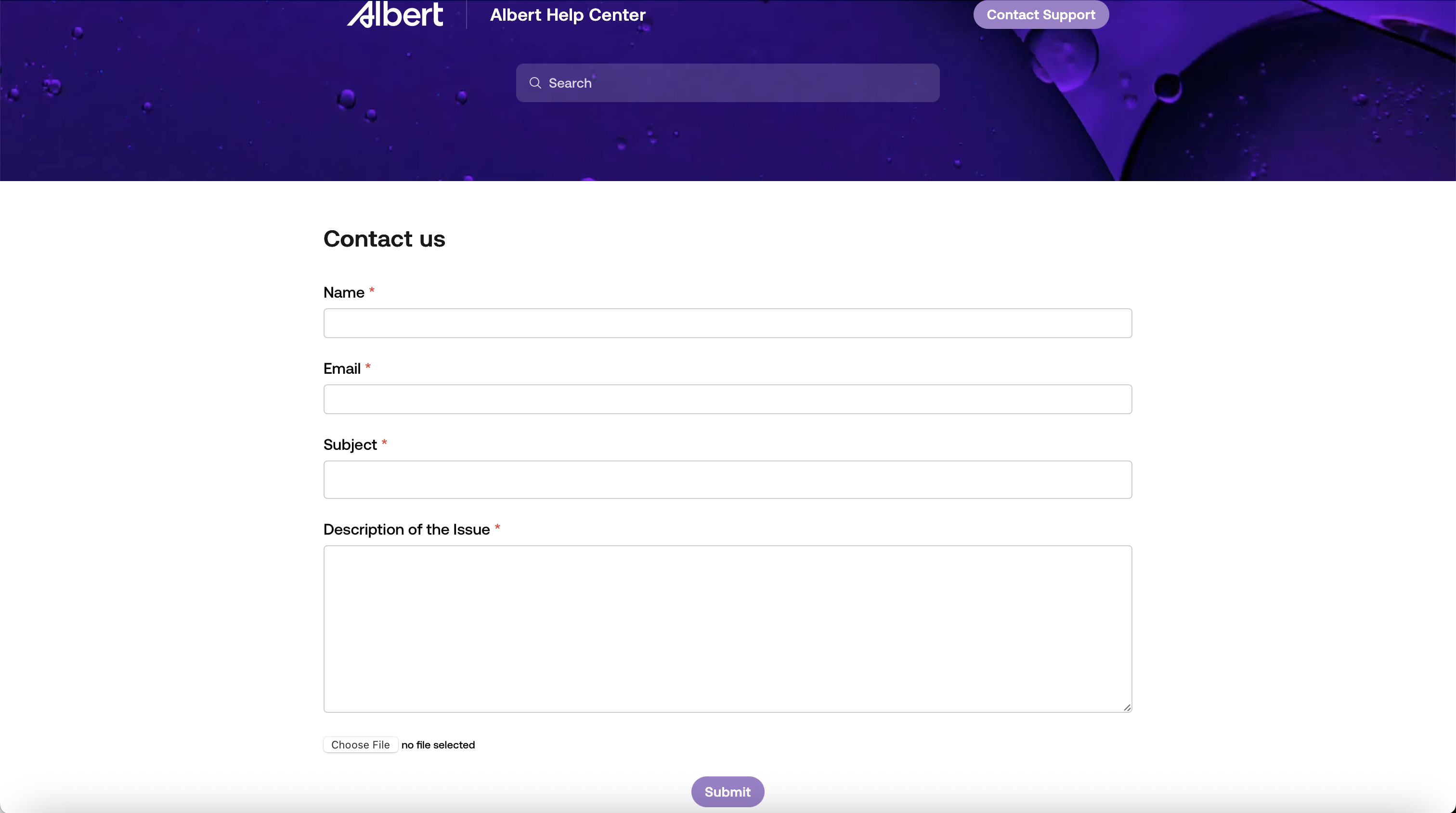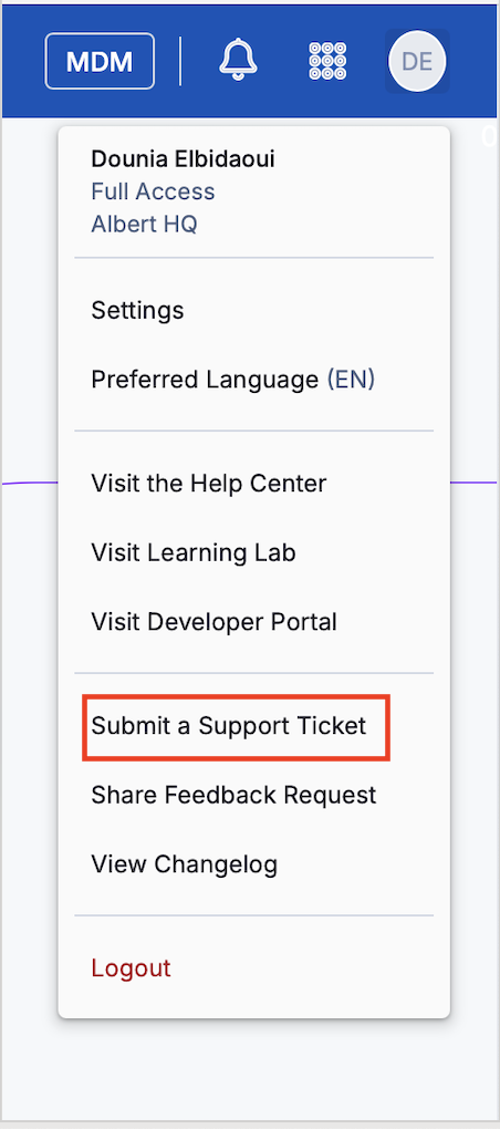 You can also submit a support ticket through the Albert Platform as shown below. It will redirect you to the “Submit Ticket” page.